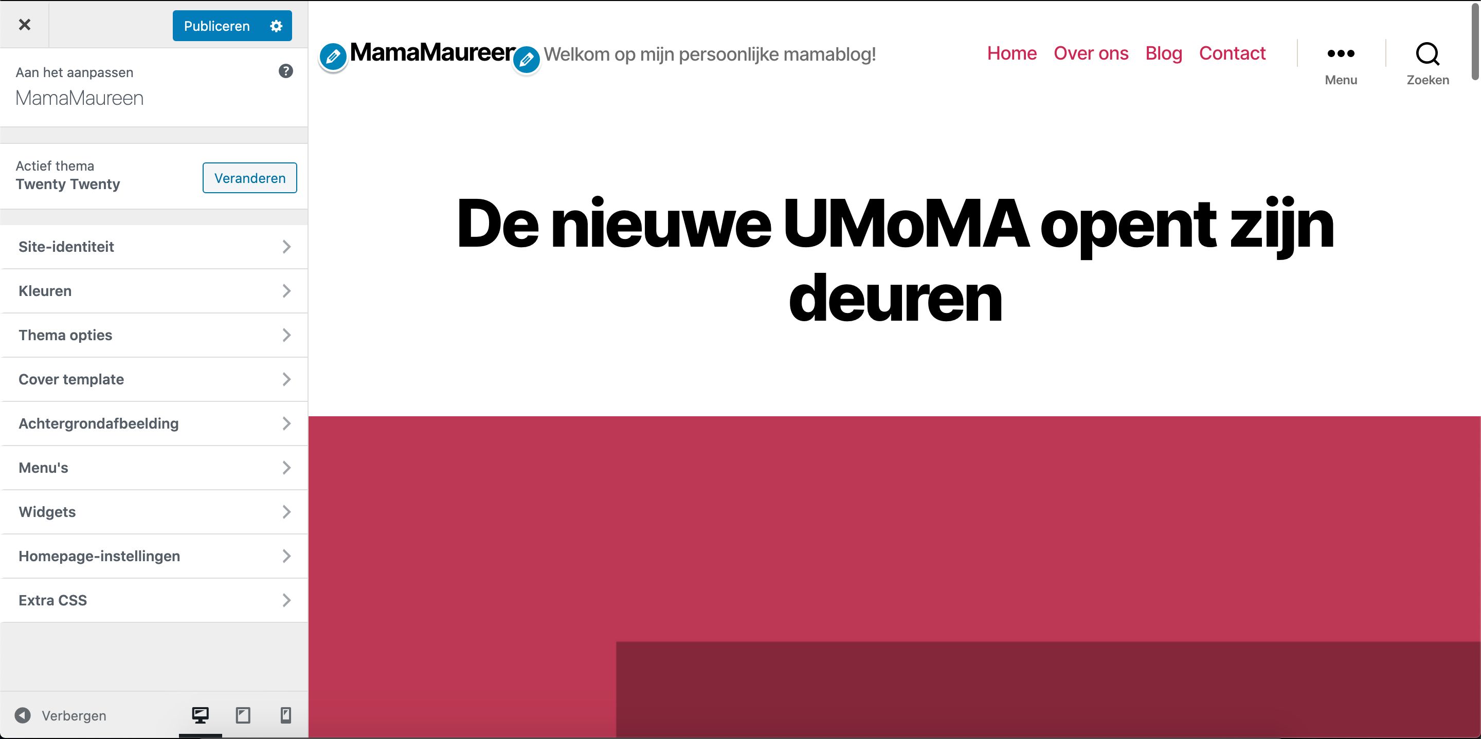 Het thema is belangrijk voor je site, want dit is namelijk hoe je site er uit zal komen te zien. er zijn een hele boel thema's via Wordpress beschikbaar. Er is altijd een thema die er goed uit ziet waar je mee kan werken. Alle thema's zijn te downloaden met 1 klik via Wordpress.