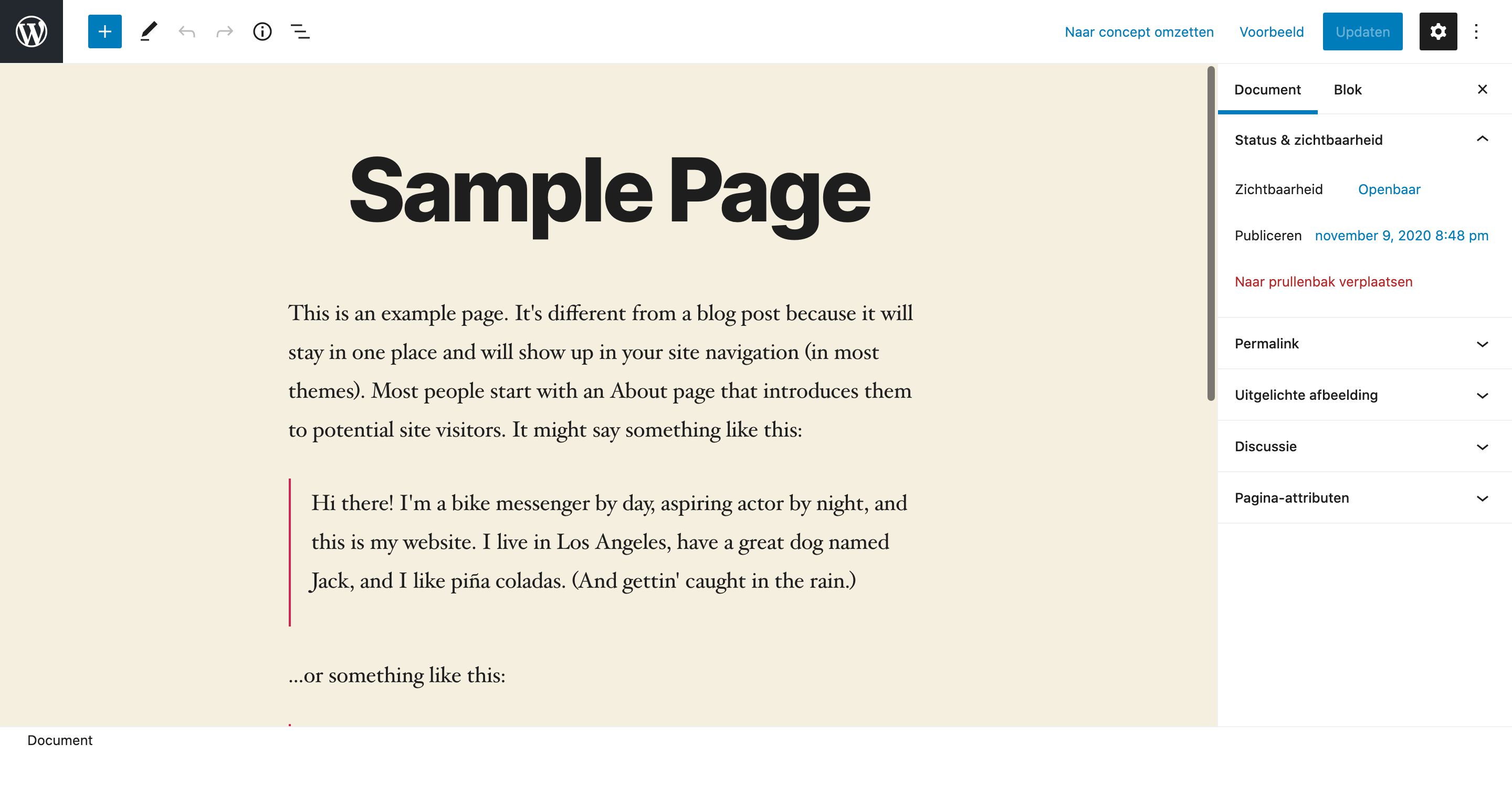 Nu je site er mooi uit zien word het tijd om je tekst, fotos en producten te plaatsen, dit kan je doen door middel van de Wordpress page editor of door een geinstallerde plugin.